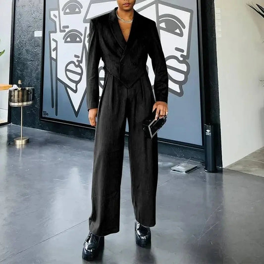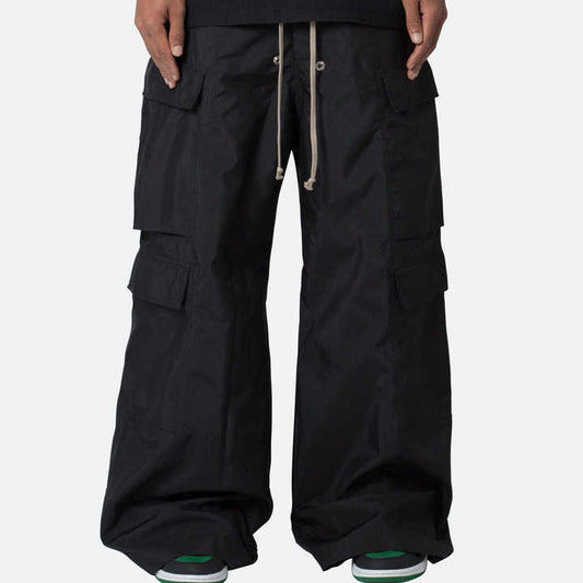 Style Wide Leg Drawstring Black Cargo Pants Unisex Straight Baggy Casual Overalls Men's Streetwear Loose Oversized Trousers