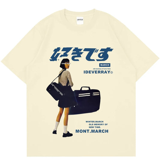 Streetwear T Shirt Girl Japanese Kanji Print Tshirt Summer Mens Short Sleeve Cotton Oversized T-Shirt