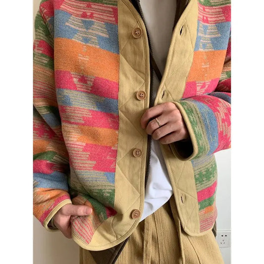 Trendy and Fashionable Men's Clothing Retro and Versatile Ethnic Style Contrasting Colors Rainbow Jacket Men's Jacket