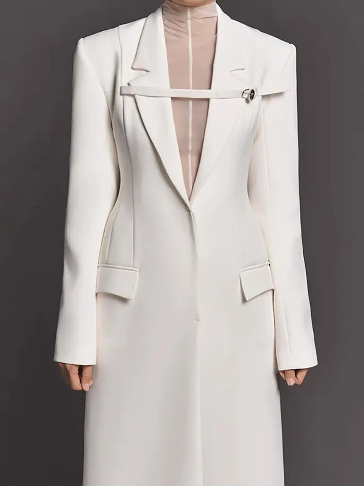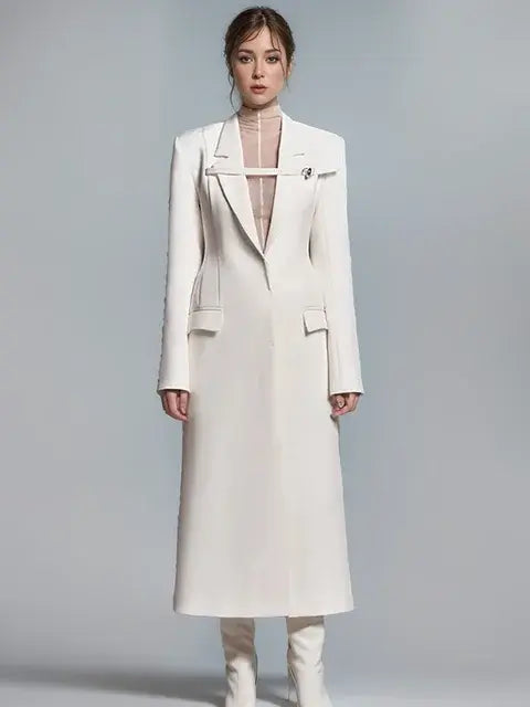 Fashion Trench Coat Notched Collar High Waist Front Ribbon Covered Button White Windbreaker Spring 2024