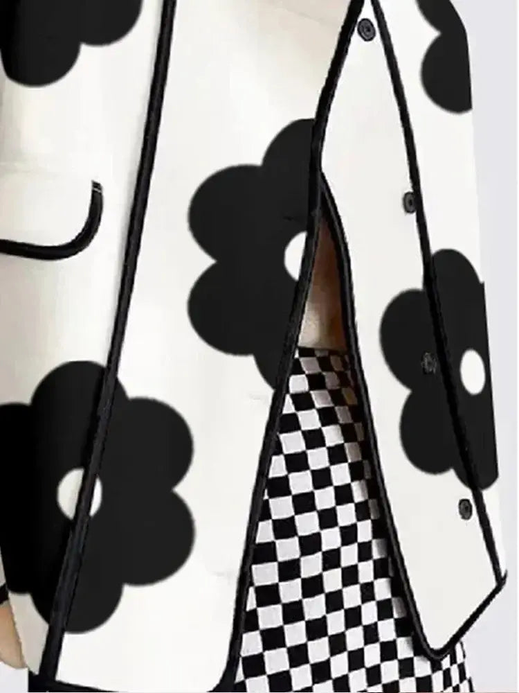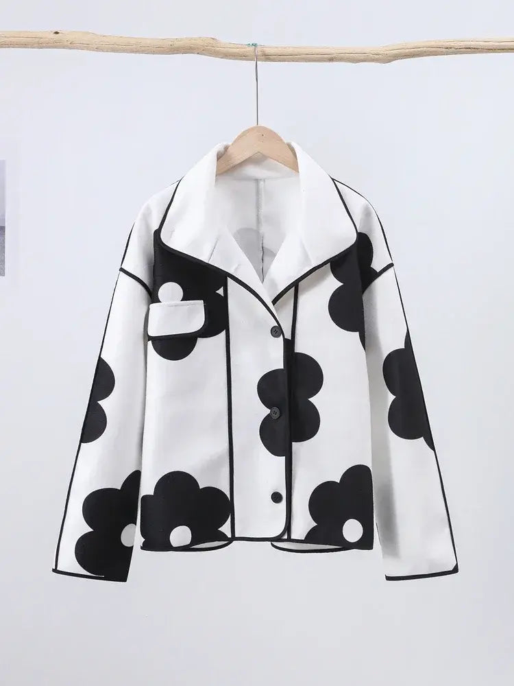 Elegant Printed Turtleneck Coat Single Breasted Long Sleeve Jackets for Loose Outerwear