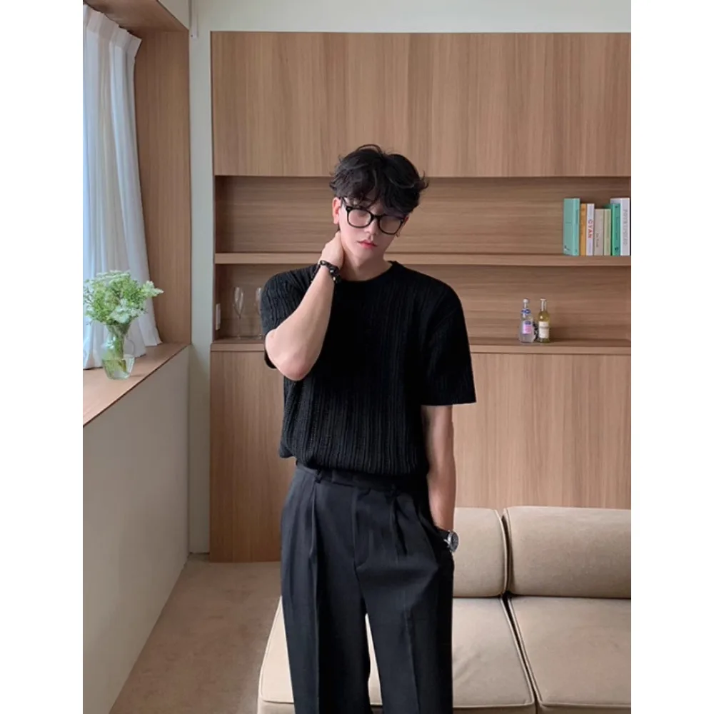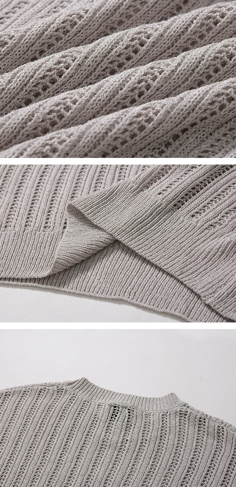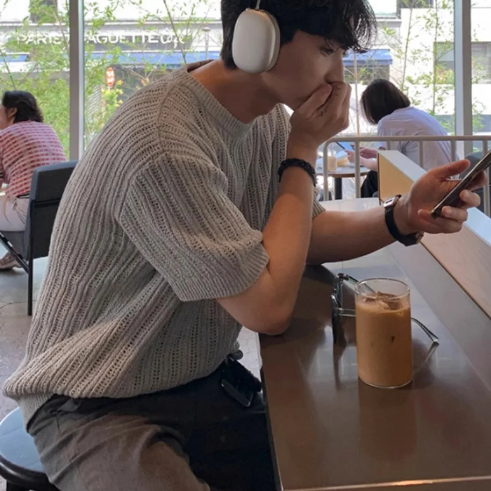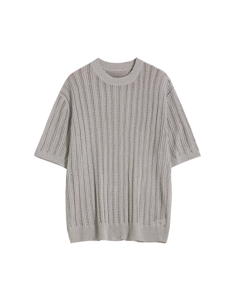 Hollow Out T-shirts for Men Knitted Half Sleeve Ins Solid Simple Tops Fit Leisure Breathable Trendy Handsome Gentle All-match