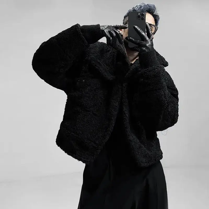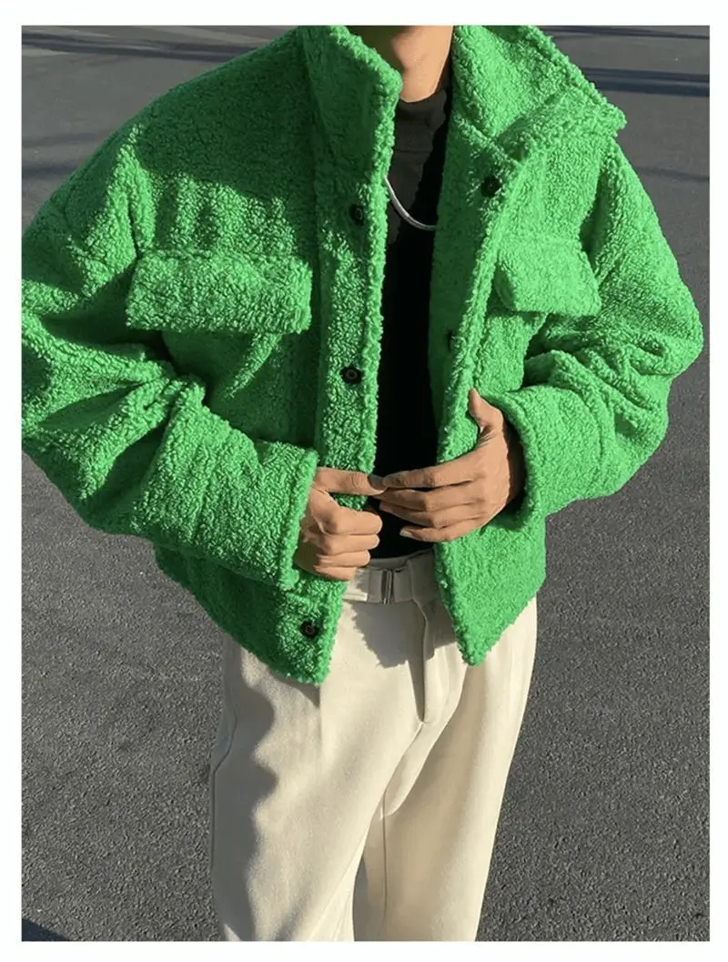 Hot Sale Ruffian Jacket Lamb Plush Plus Cotton Thick Spring Trendy Baseball Clothes Lovers Jacket Single-breasted Hipster Coat
