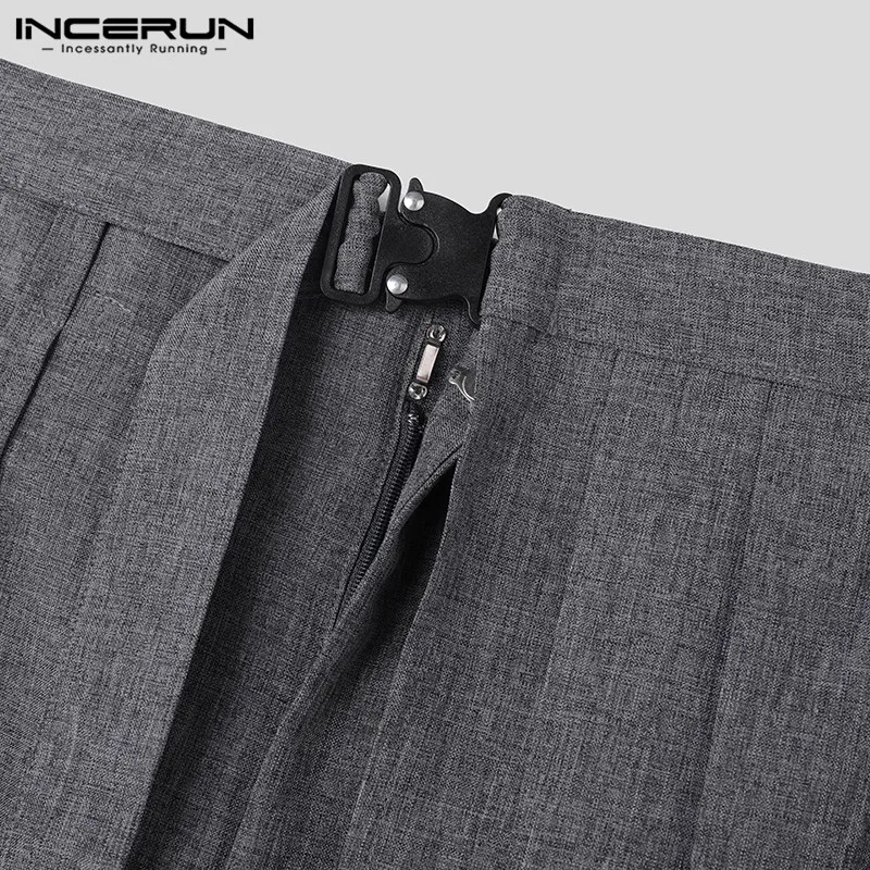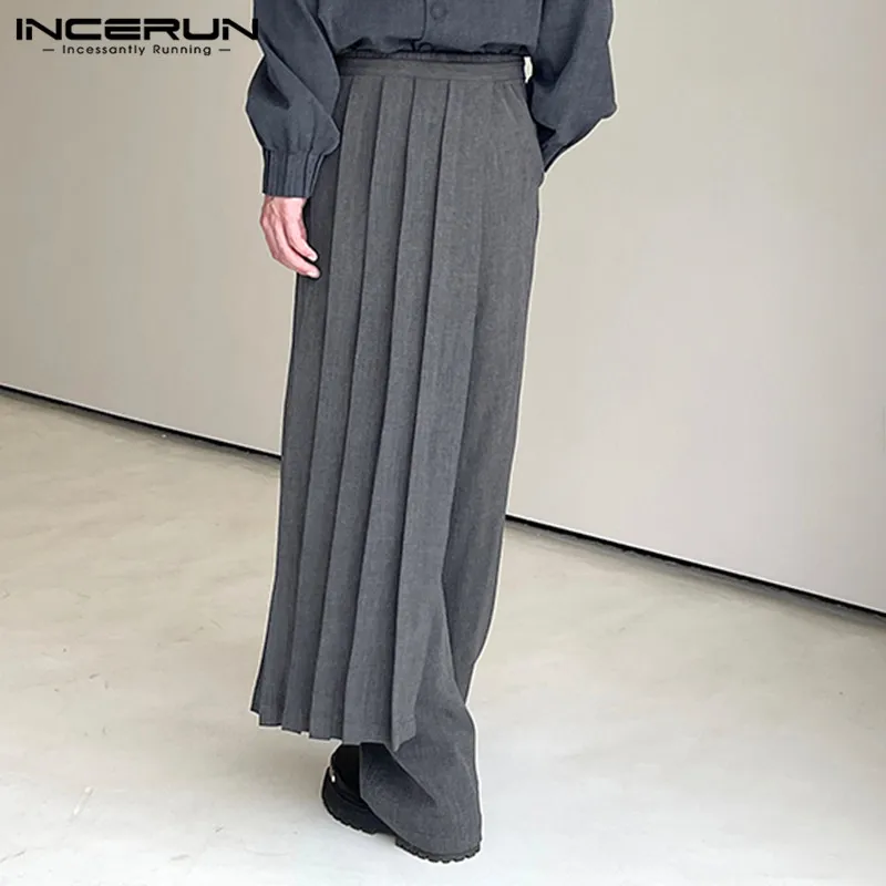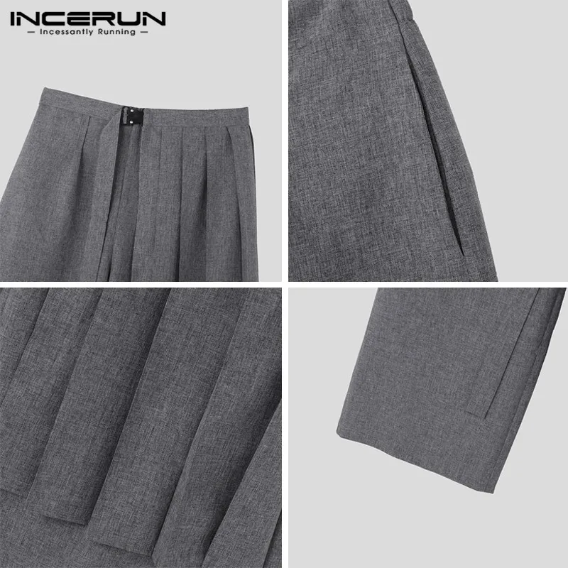 INCERUN Stylish Hot Sale Men's Pantalons Detachable Half Pleated Skirts Pants Casual Streetwear Solid Wide Leg Long Pants S-5XL