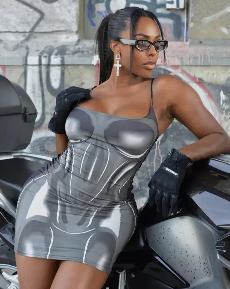 3D Printing Spaghetti Strap Mini Dress Women Sexy Hipster Square Collar Body-Shaping Hip Skirt Streetwear.