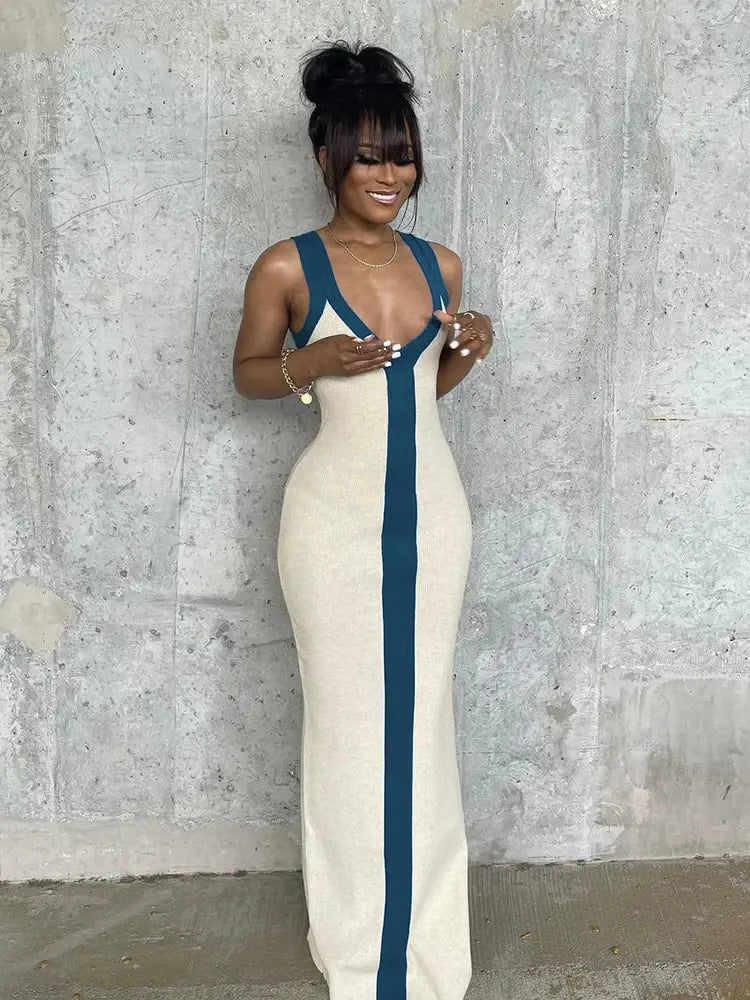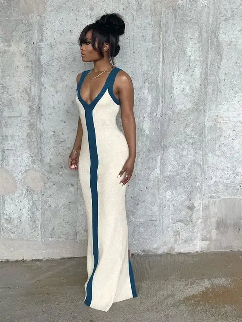 Ankle-Length Casual Ribbed Knit Dress Bodycon Slim Robe Vestido Long Skirt.