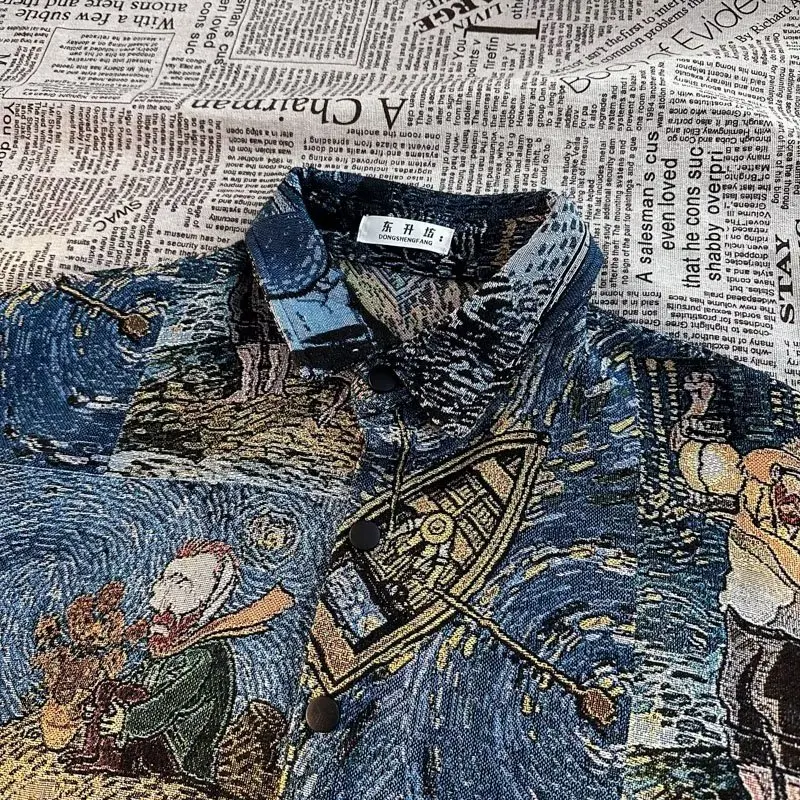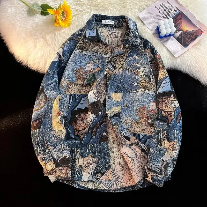 Men Jacket New 2024 Fashion Spring Autumn Casual Print Long Sleeve Shirt Retro Youth Casual All-match Top Men Shirt Coat