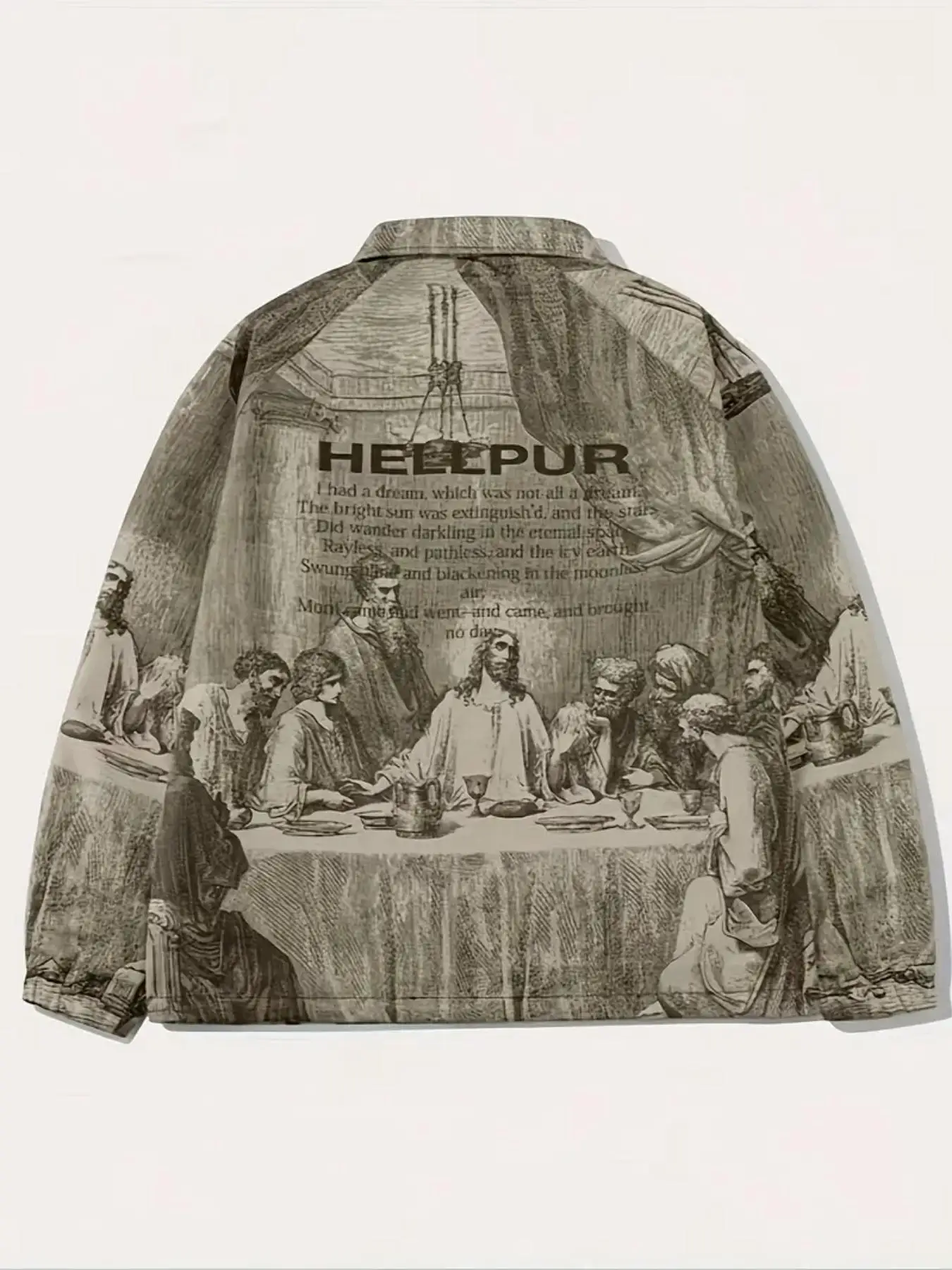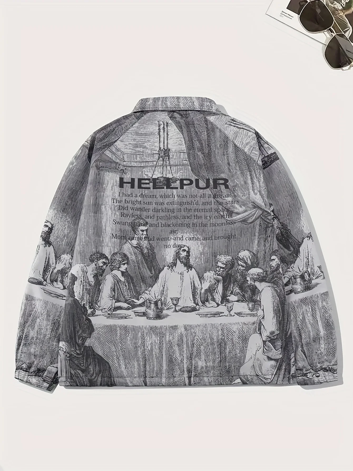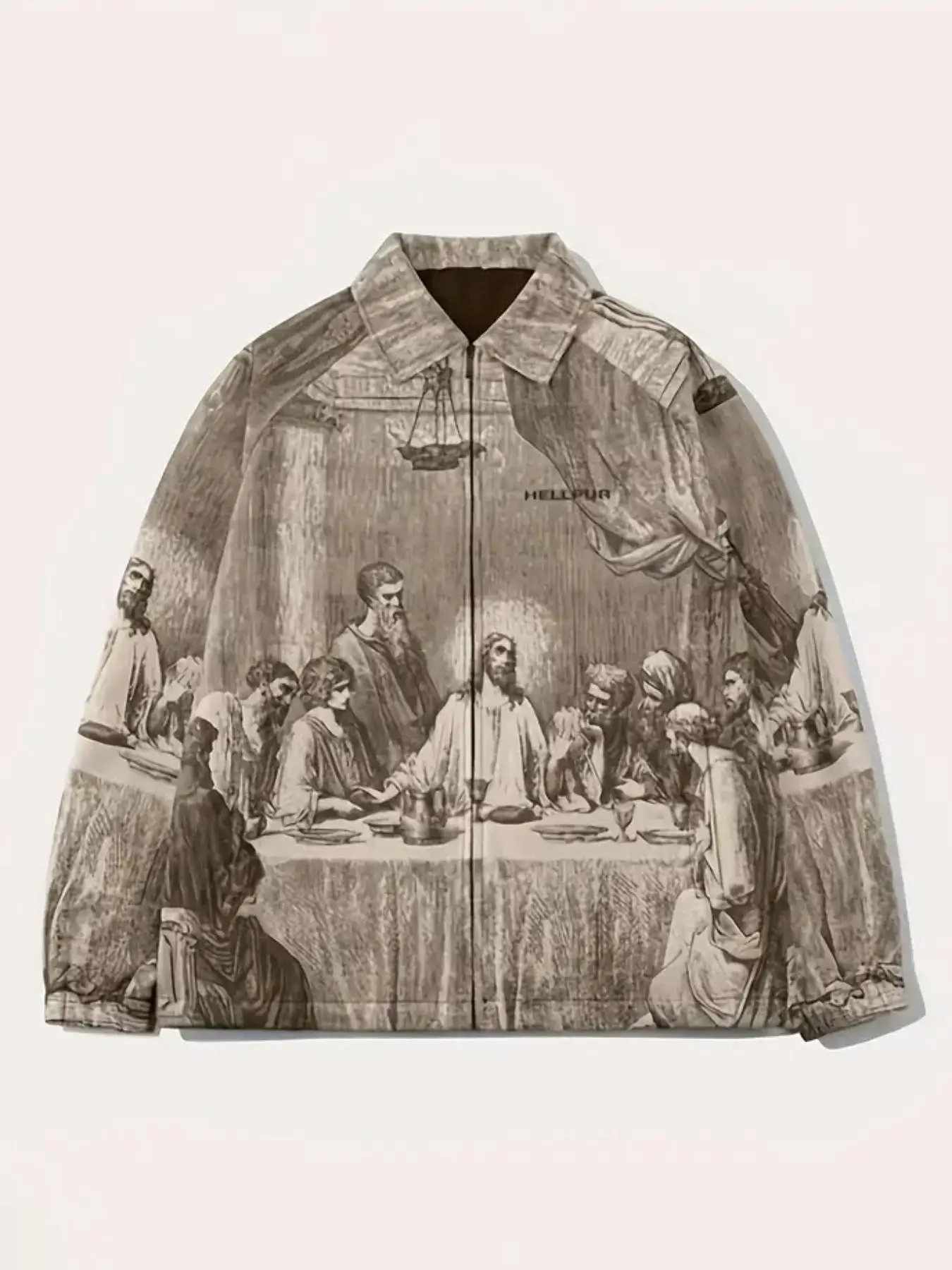 Men's Jacket Casual Sports Trench Jacket Personality Digital Print Jesus God Famous Painting Casual Jacket Fashion Versatile Jac