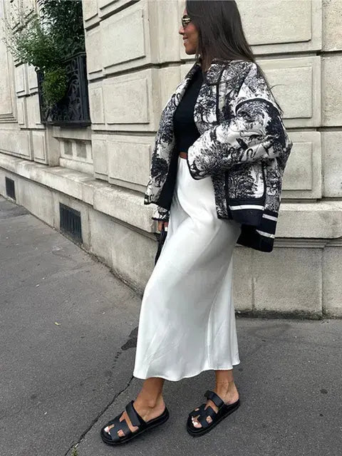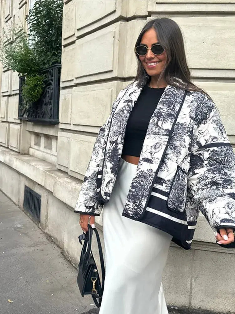 Print Winter Jacket Women Paint Patchwork Panelled Loose Scarf Collar Cotton Coat 2023 Fashion Pocket Lady Warm Outwear