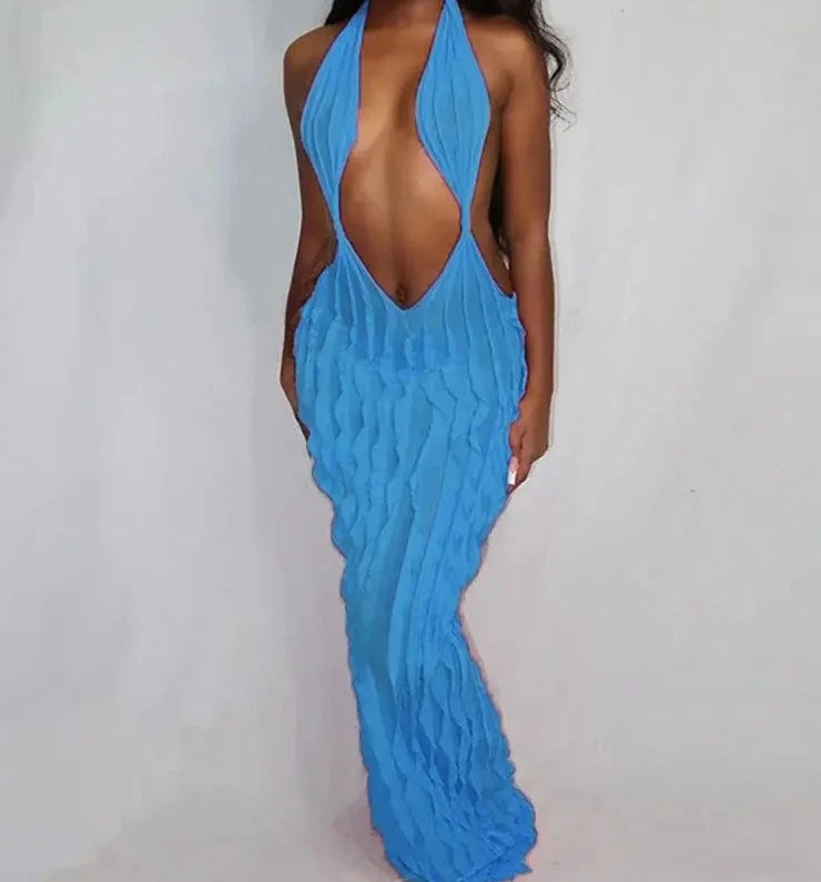 Sexy Backless Maxi Dress Women Sleeveless Deep V-Neck Halter Long Dresses Party Clubwear