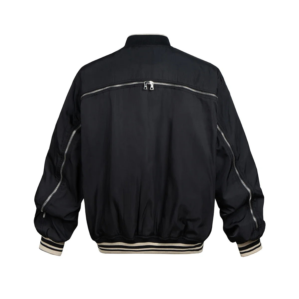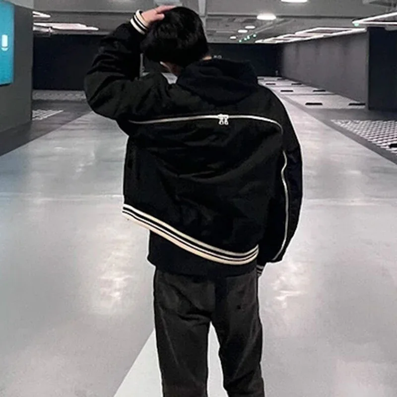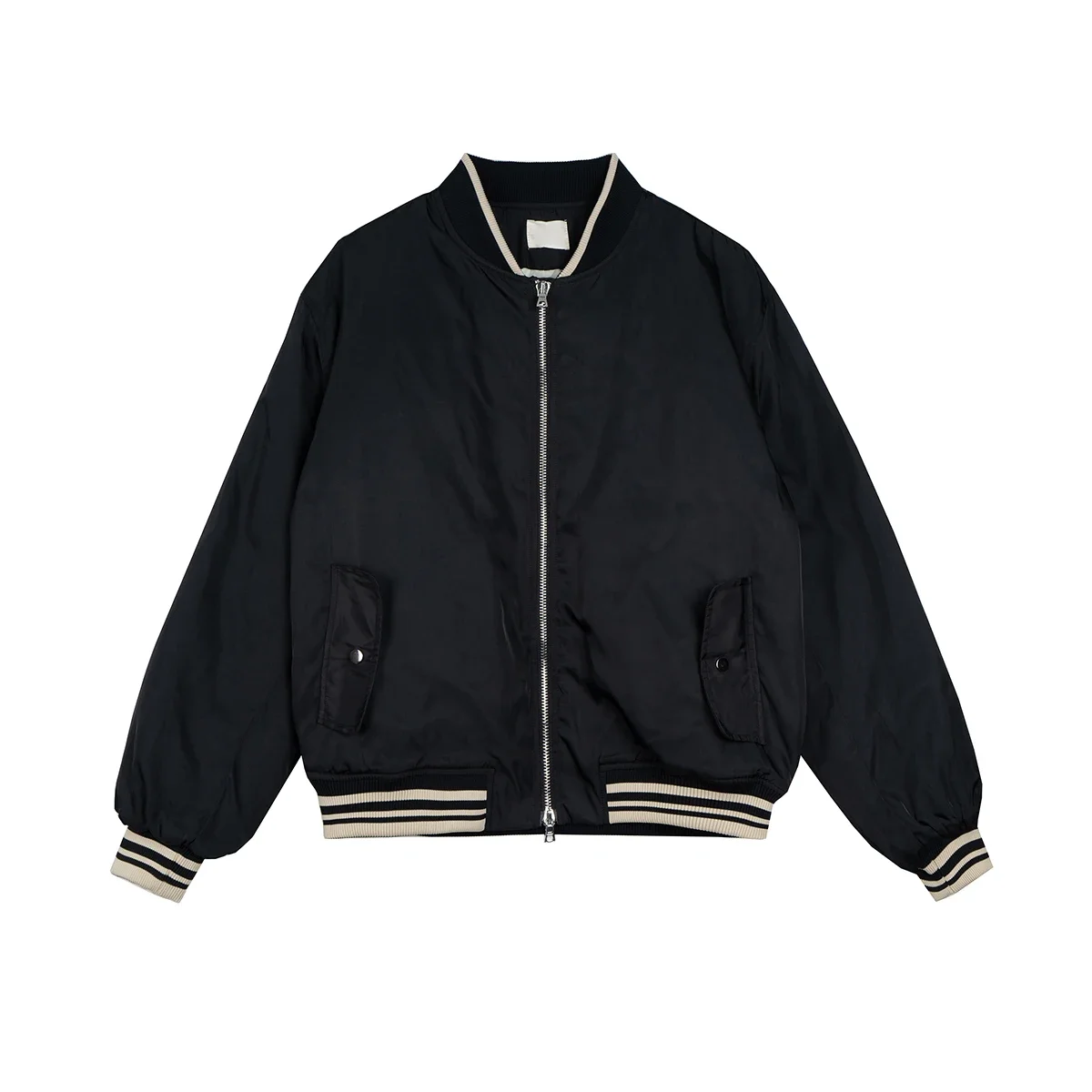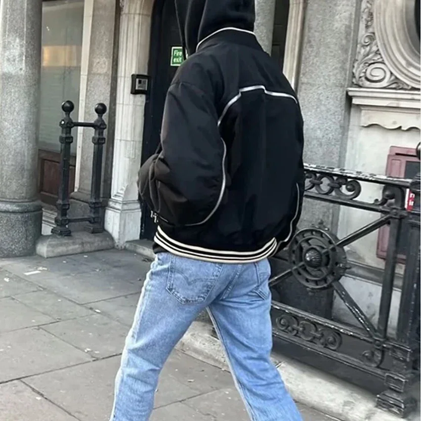 Streetwear Solid Color Back Zipper Nylon Cotton Jacket for Men Winter Stand Neck Thick Outwear Windbreaker Bomber Jacket