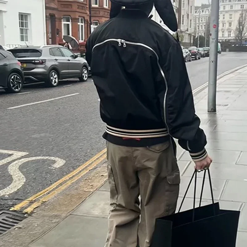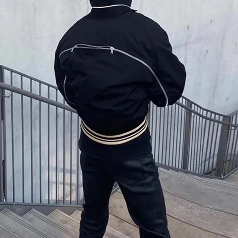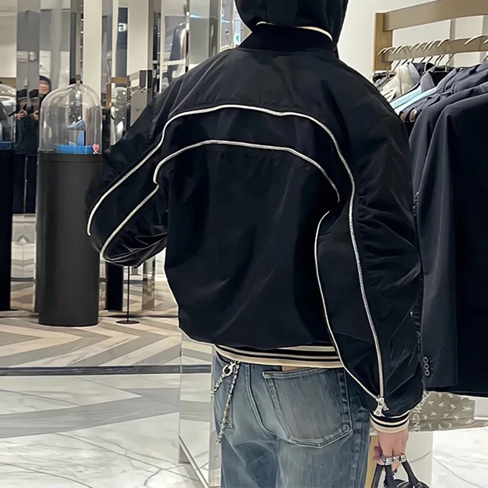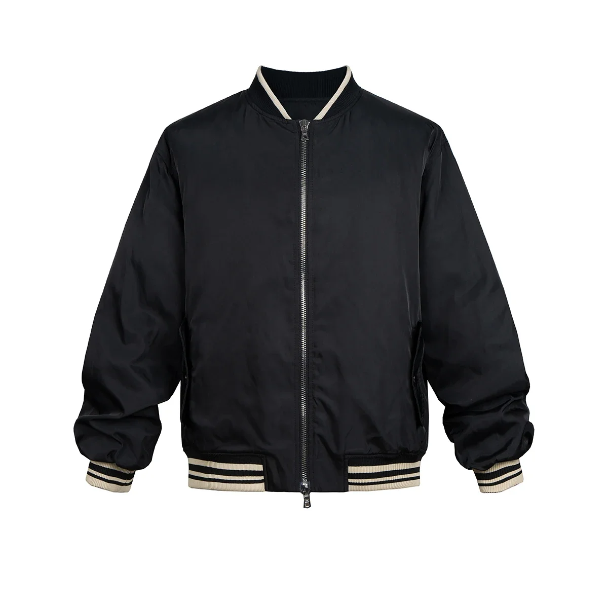 Streetwear Solid Color Back Zipper Nylon Cotton Jacket for Men Winter Stand Neck Thick Outwear Windbreaker Bomber Jacket