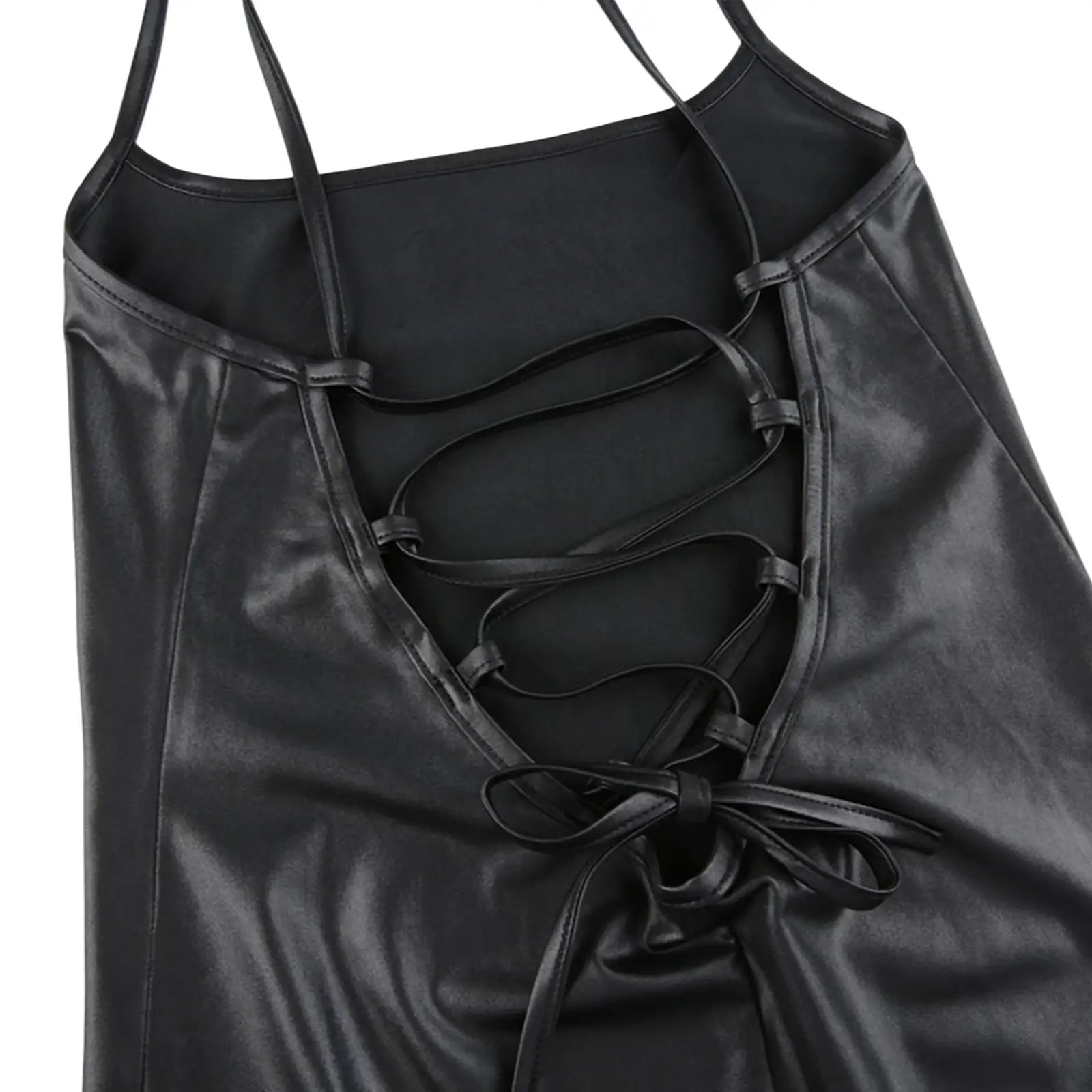 Sexy Suspender Mid-length Bodycon Dress Fashion Solid Color Leather Bandage Backless Skinny Split Dress